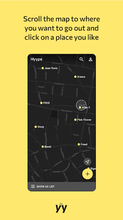 Through the Hyype map you can search for places in the area of your interest. Once you start watching Glimpses from a Place, swipe up to move to the next place and quickly view Glimpses from different places around town.