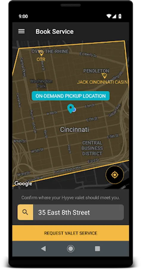• Open the app and enter the location that you would like one of our valets to meet you.