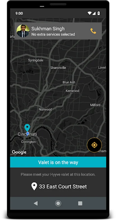 • You will see your valet's picture and contact information, providing for a secure transaction. Our valets will stand out with gold and black branding. You can contact your assigned valet directly via the application for any questions, requests, or concerns.