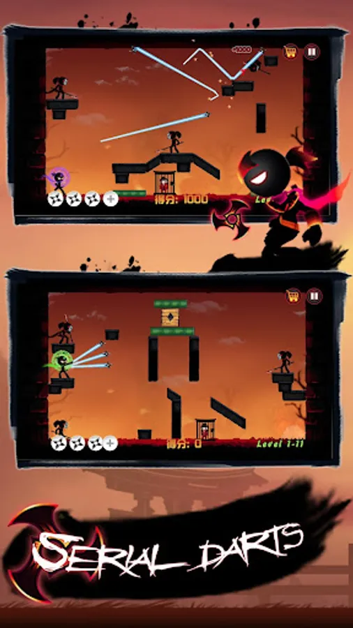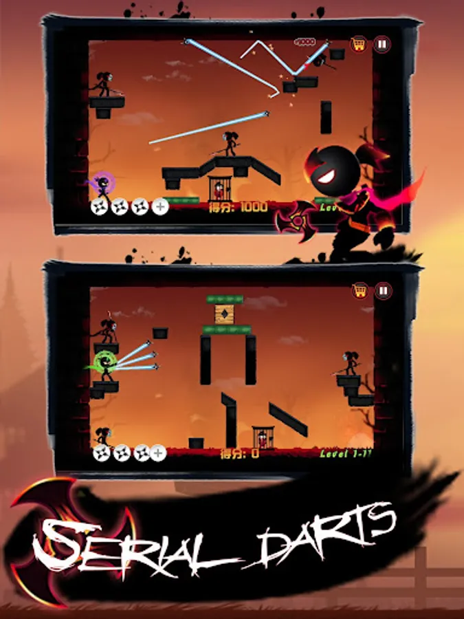The game is easy to play, just swipe your finger to get started. There are a lot of ingeniously designed level scenes in the game that you need to challenge. Stickman ninjas with different abilities are available for you to use. There are also a variety of powerful props to help you!
