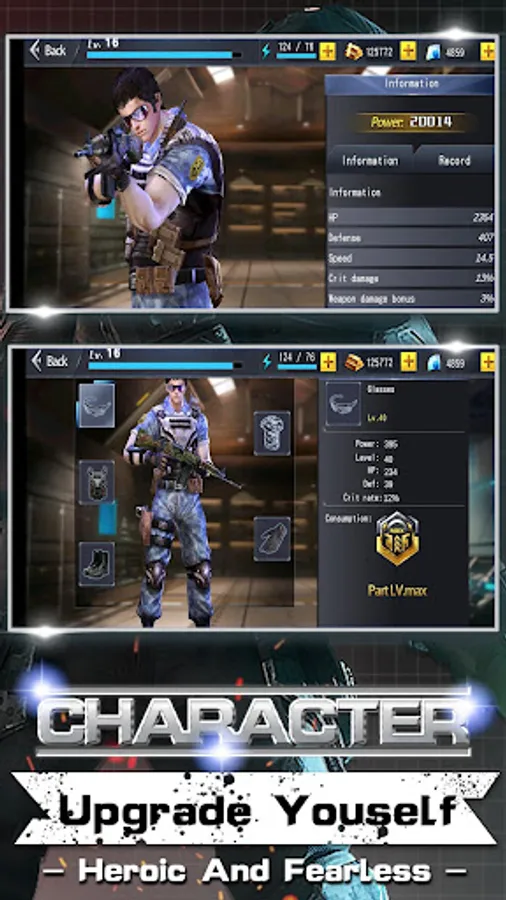 *Unique character upgrade system, make your character become more powerful in the war, take more damage, and create more fire output!