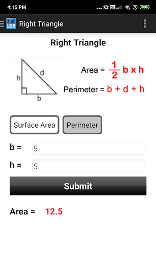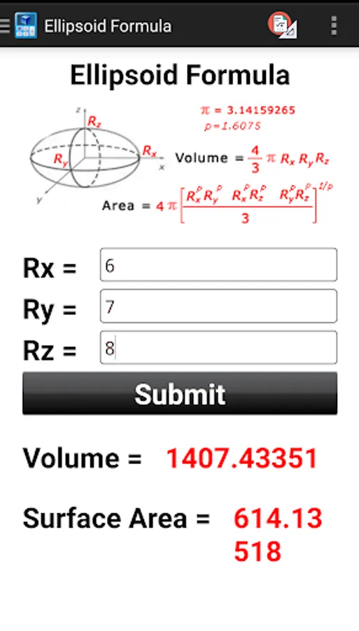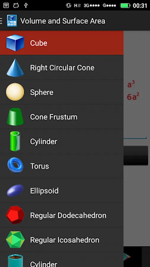 Mathematics calculator and formula for volume and surface area calculate. This app total have 26 items, you can use this to cal items volume and surface area and it also include Formula.