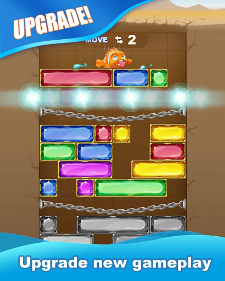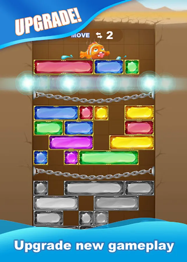 It moves gems horizontally, fills them with a line, and eliminates high scores.