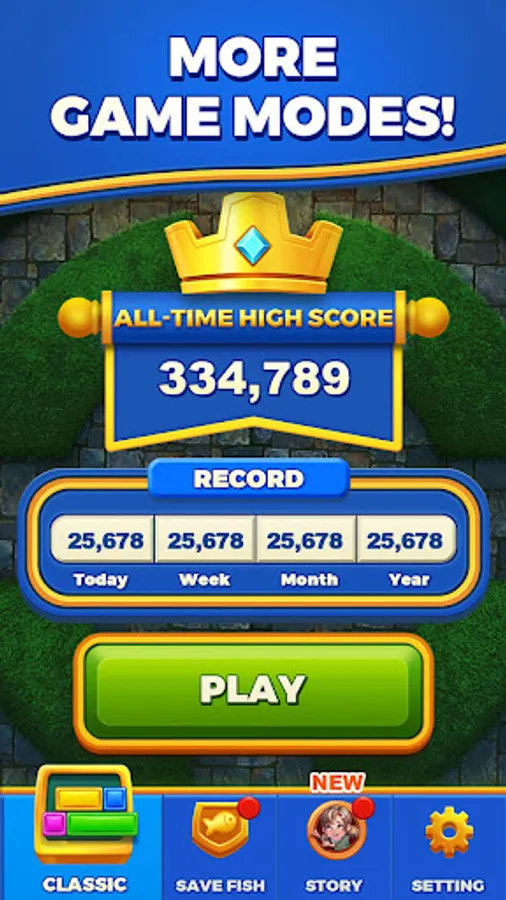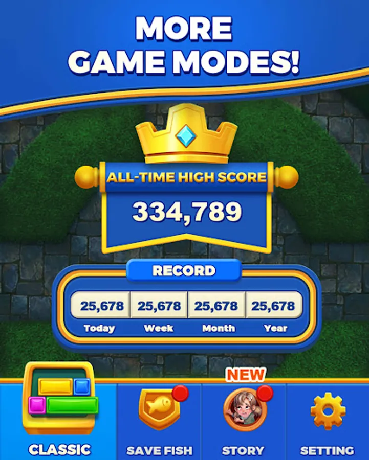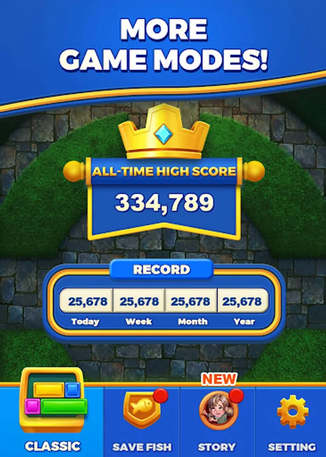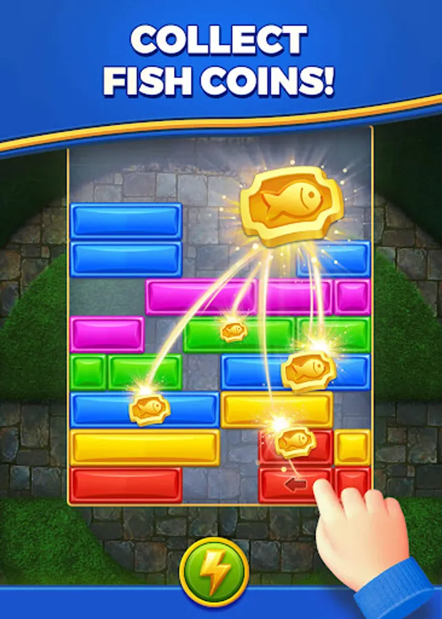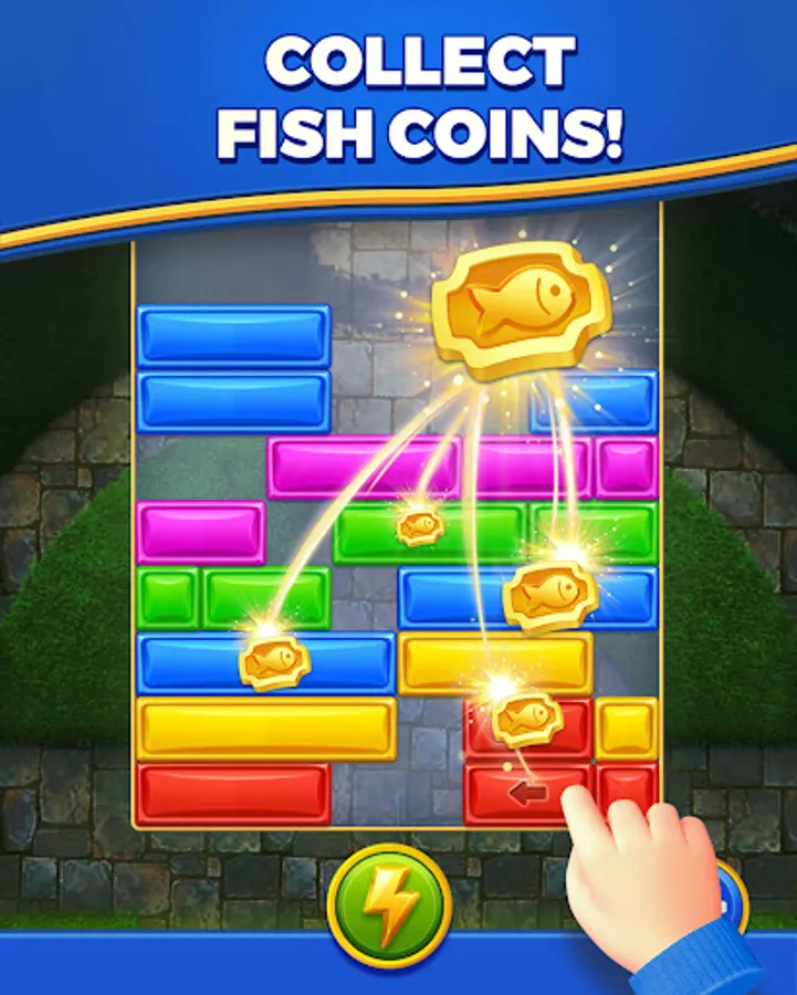 Welcome to "Royal Dropuzzle: Save Fish"! Embark on a captivating puzzle adventure in a magical royal world. Experience the addictive gameplay of this block puzzle game as you slide and drop blocks to fill entire rows and achieve satisfying eliminations. Collect goldfish coins along the way to unlock diverse fish levels and rescue a variety of adorable fish.