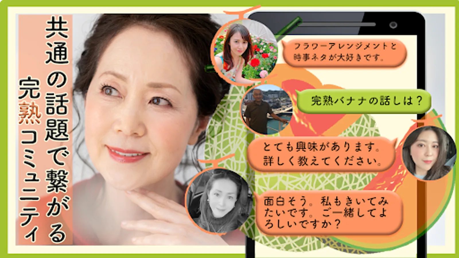 Moments that such middle-aged and elderly people feel comfortable, pleasure, scenes that make them happy, and ripe melon apps. Only delicious parts, only rare parts are collected. The older you get, the faster time passes. Time is limited, summary of fun time The Showa Ripe Melon App allows you to spend your time comfortably. Thanks to you, we were able to welcome the 3th anniversary on October 10, 2022. The 3rd anniversary party was able to end with great excitement thanks to the great cooperation of the users. Thank you very much. And it was cheers for good work. Including such things, we have received great support from men and women in their 40s and above. Don't you care about the taste of the same mature generation because it's a mature generation? Currently, men and women with an average age of 50 have installed it and are enjoying it.