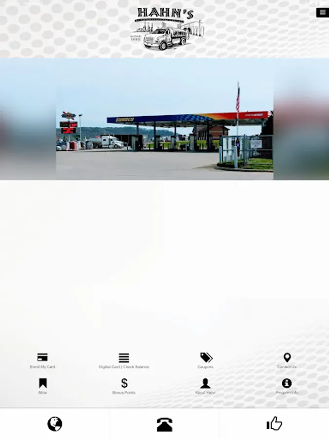 For all Hahn Oil reward card holders, this is the perfect app to help you keep track of your reward points. In addition to registering your card and checking your balance, you'll find quick links to all participating locations as well as available coupons. You can now download a digital card!