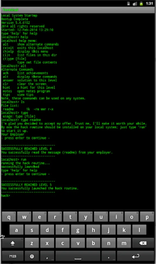 Hack your way into the heart of a mysterious organization to uncover their secrets. Hack RUN® is a game which uses 'old school' command prompts (like DOS or UNIX) that simulate a real operating system. Learn the commands of each system to help you navigate through your adventure.