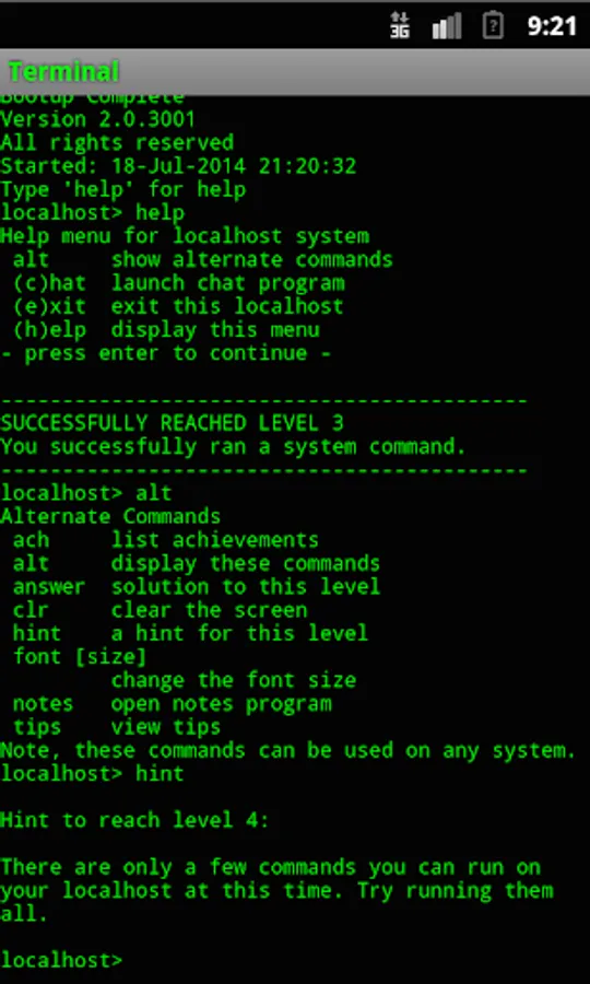 Stuck on a level? Just use the 'hint' or 'answer' commands to help you along.
