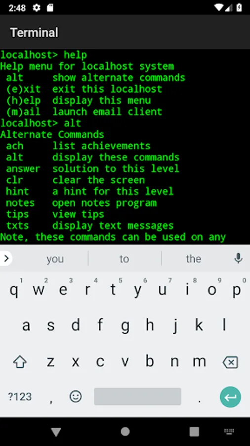 Stuck on a level? Just use the 'hint' or 'answer' commands to help you along.