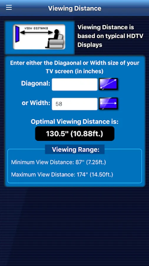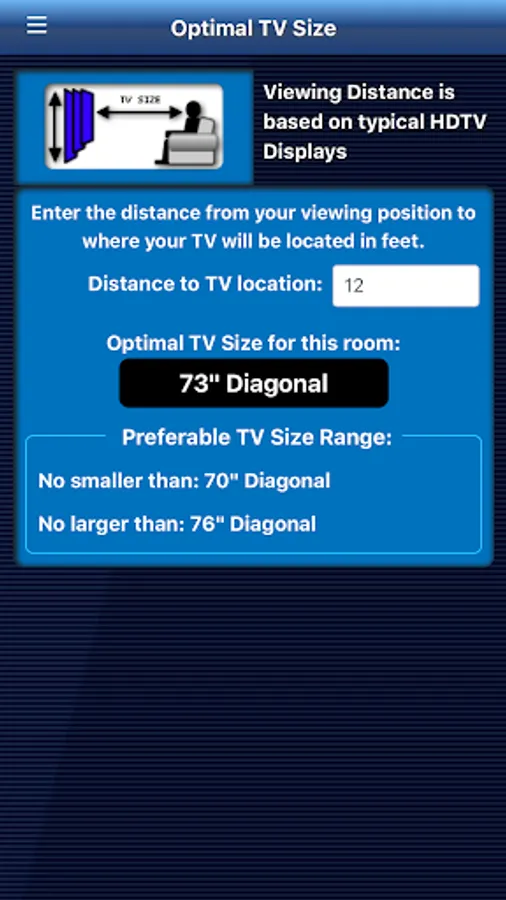 There are a few variations of TV viewing recommendations in the industry. While TV-Tools doesn't claim to be THE one and only tool for finding the best viewing preference for everyone, TV-Tools is based on a the most common viewing recommendations for HDTV’s. There is always the consideration of room lighting, viewing angle, vision, etc. that may alter ones viewing preference over someone else’s.