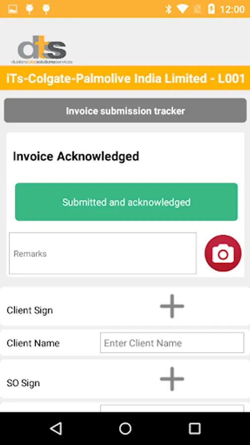 iTs-Invoice Tracking System Mobile application is used to track all the invoices submitted at each client on monthly basis. The hard copy is provided to client by capturing the snapshot of invoice using iTs mobile app. The client signs on the mobile with the captured image and the ARM signs before the submission of the invoice.