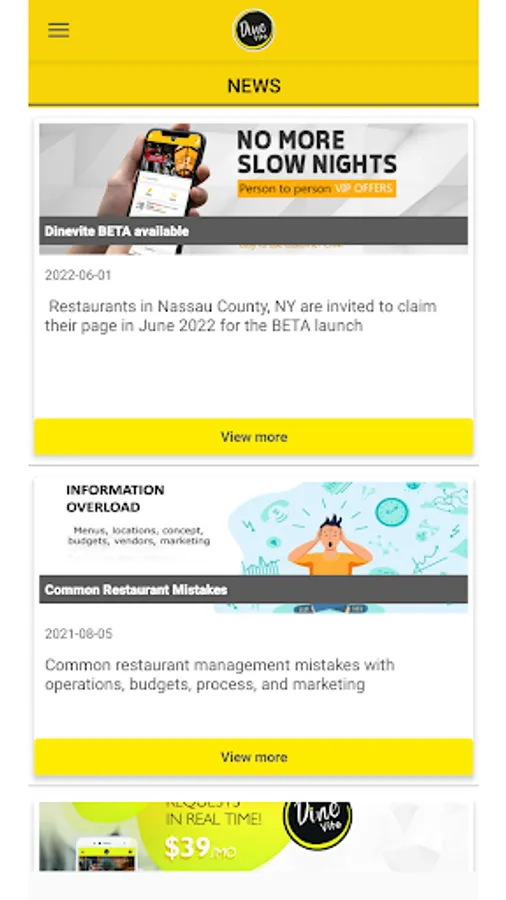 DineVite is the best spot-offer technology available for restaurant-consumer direct interaction. Live public offers, private VIP offers, favorites, wishlists, VIP lists, auto on-premises recognition and notification. With DineVite you’ll be treated like the VIP you are.