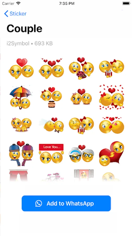 The app comes with 12 packs containing 320+ stickers. More sticker packs can be downloaded from our servers to reduce the app size. The sticker packs are updated regularly to cover all famous events, holidays, and occasions.