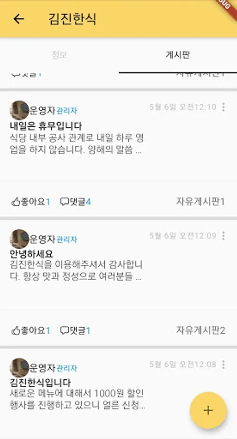 04. Experience various functions such as restaurant information, bulletin boards, and photo albums.