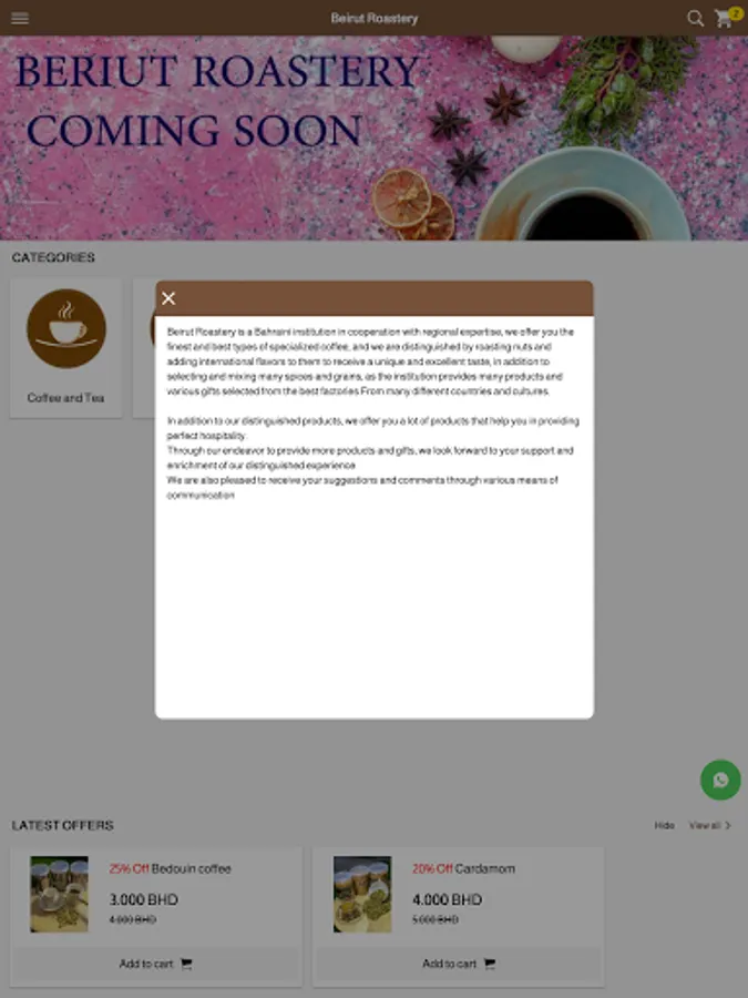 Beirut Roastery application is an online store that provides roastery products in addition to various gifts and offers.