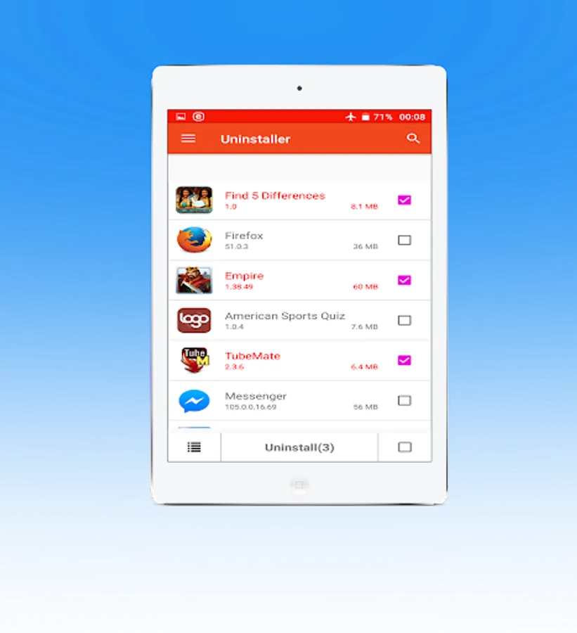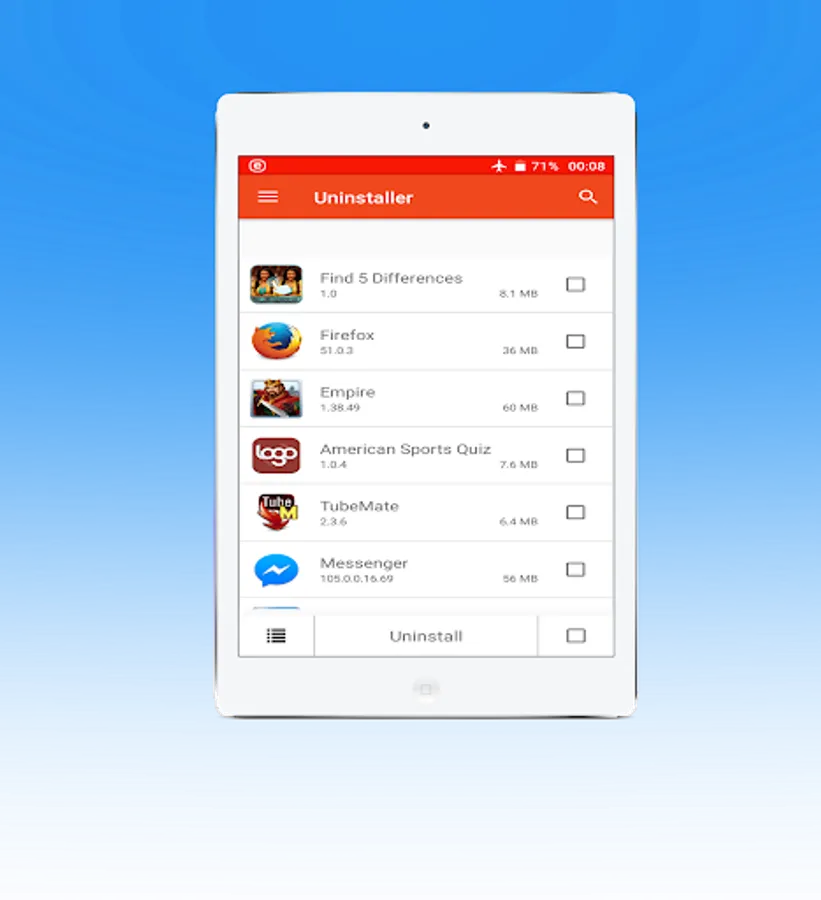 "Uninstaller" is the must app for every smartphone to best utilize your phone memory. The app keeps your phone memory clean and improves the overall performance. the app is 100% reliable and efficient app. Get the app and keep your smartphone always clean by uninstalling the application in the most effective way. Just search the application you want to uninstall and click uninstall to completely remove the application from your phone including the cache. The app uninstalls multiple apps in just one click from every part of your smart phone.
