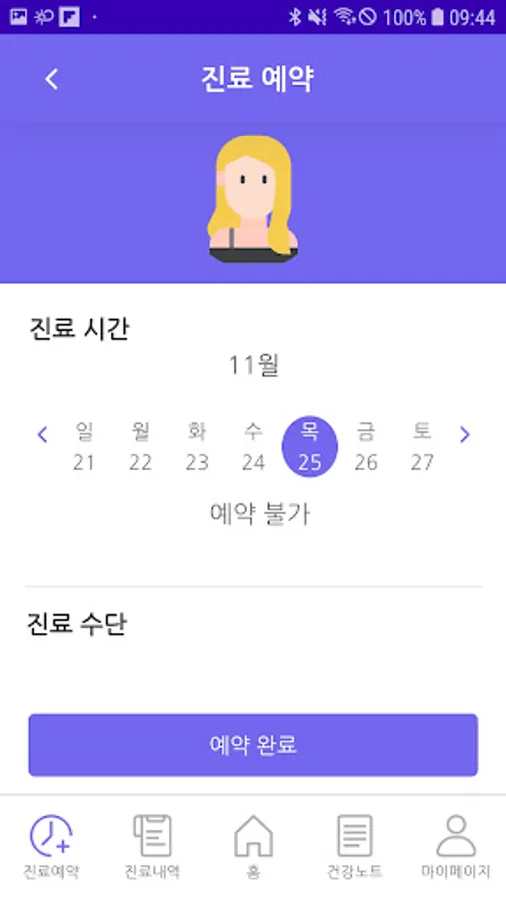 2. 진료예약에서 원하는 진료과를 선택한 후 지정된 의사의 목록을 확인하고 선택된 의사의 스케줄을 확인해서 원하는 날짜의 원하는 시간을 선택해서 진료예약을 할 수 있다.
