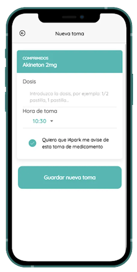 i4park has a list of all the medications you may need for Parkinson's. You can make a list with them and enter at what time you should take them. If you wish, you can also ask the application to remind you of them by means of a notification.