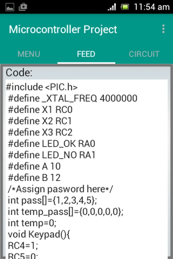 "Microcontroller Project" app is built with some complete projects. We assume that you have basic knowledge about microcontroller. If you do not have the basic knowledge, please see the app "Microcontroller Tutorial". You can say "Microcontroller Project" is the second part of "Microcontroller Tutorial". The feature of the app is given below: