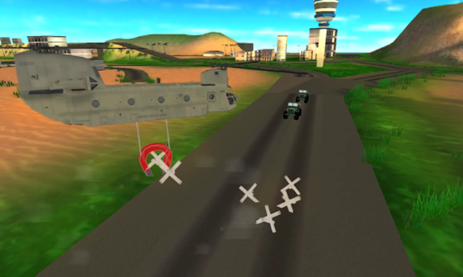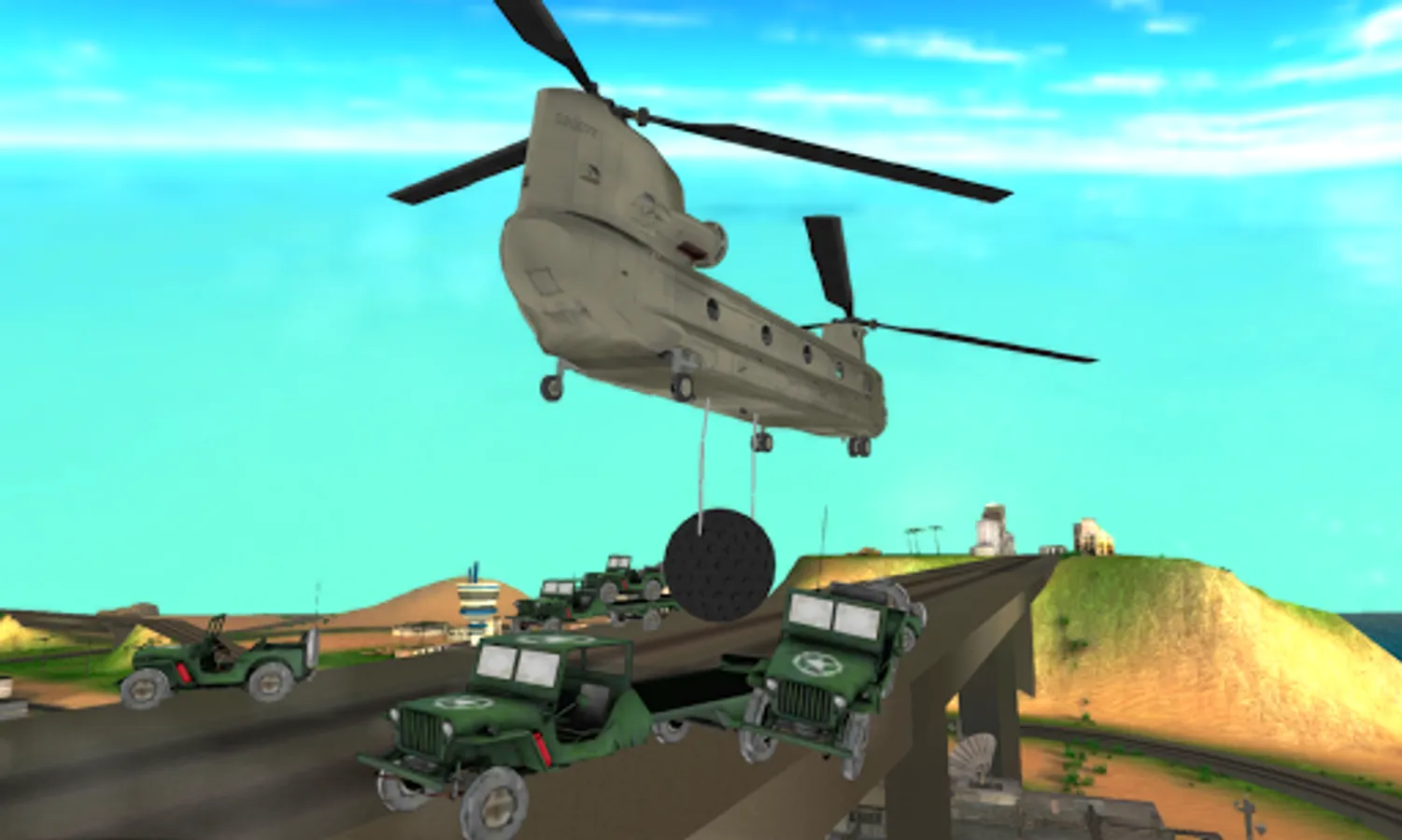 Early on in the Helicopter Flight Simulator 3D, there are easy missions, like learning to fly the army Chinook helicopter and getting used to controlling the helicopter.