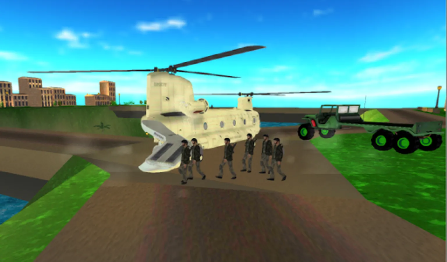 Our game comes packed 20 exciting missions (more to come!) where you can take control of an army Chinook helicopter and pull off action-packed objectives that involve, rescuing stranded soldiers, retrieving important packages, firing heat-seeking rockets at enemy truck, clearing the way for your fellow army cadets with the help from specialized helicopter attachments, like a wrecking ball!