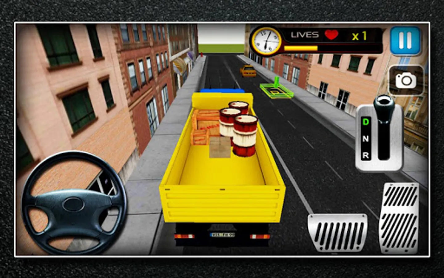 Truck Parking 3D Simulator is a Truck driving simulator, in which you must collect heavy goods and deliver them in a heavy duty truck. Start with starting your engine, putting the truck into drive, (remember if you don't put the truck into drive, you wont be able to drive anywhere) Then make your way to the warehouse, collect your goods, then carefully drive your truck down the road, turning left and right. Using the guidance of the arrows marked on the road, to the heavy truck parking spot.