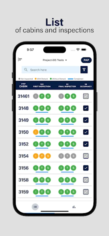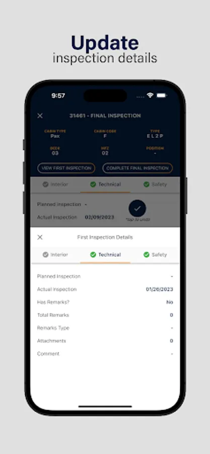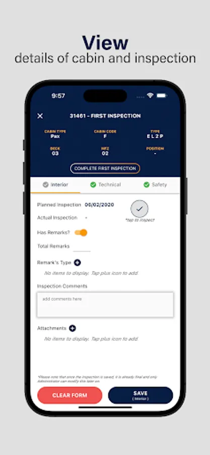 Cabin Inspection is a tool that helps you to keep your daily tasks on track. You will be able to monitor the overall status of inspections per area of assignment. Adding photos as a feature will give you the capability to look for the area/furniture that needs to be fixed or for replacement.