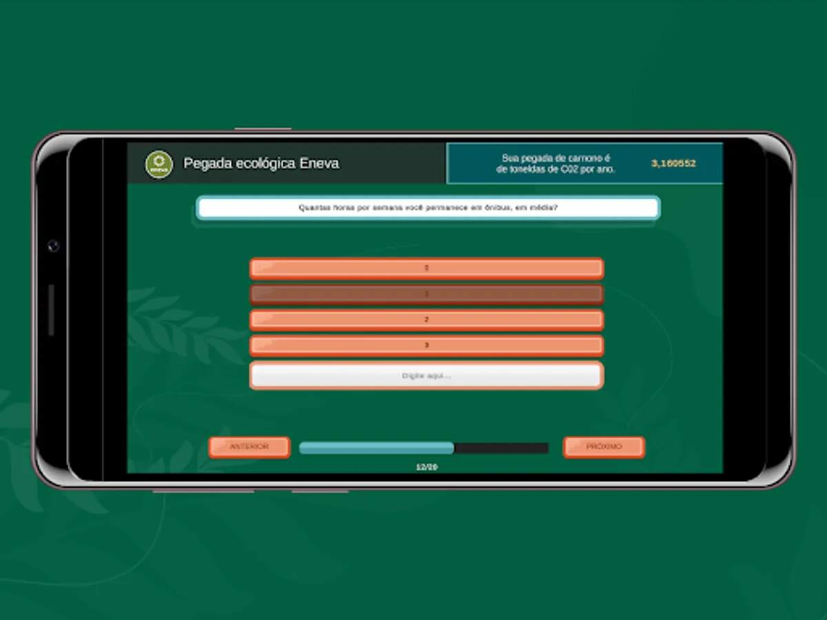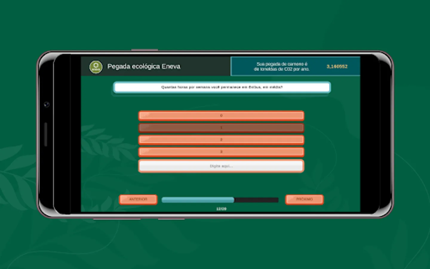 Eneva's Ecological Footprint is an application aimed at carrying out the calculation of the Carbon Footprint based on the presentation of questions to employees, collecting the answers to carry out the calculation of annual carbon use.
