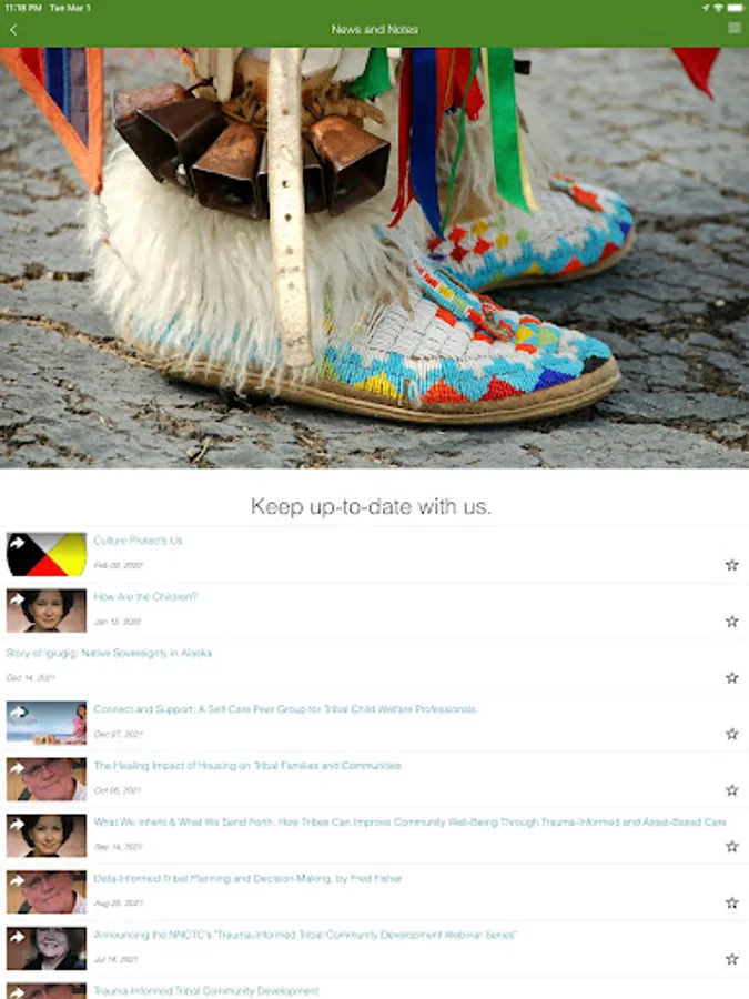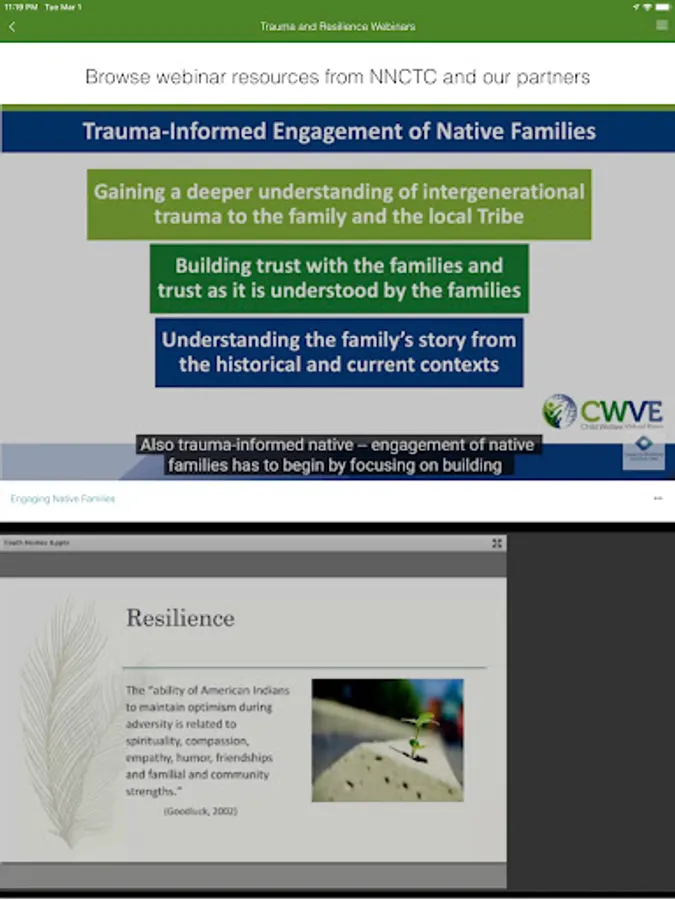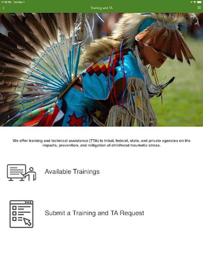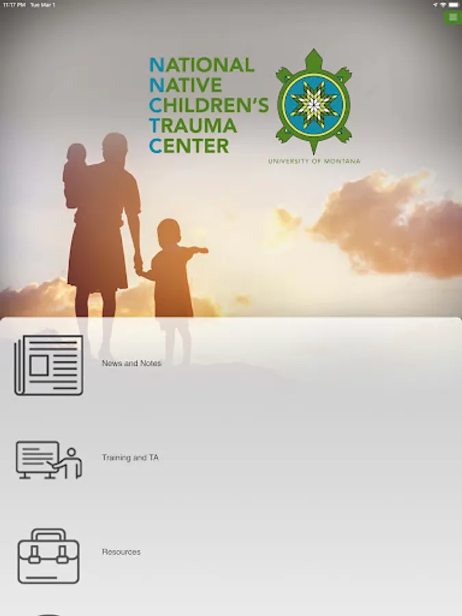 The National Native Children's Trauma Center is releasing a mobile app to support and promote their mission. Their mission is to co-facilitate trauma-focused healing for native children, families, and communities. This work requires understanding, respect, and honoring of tribal sovereignty, specific community needs, and the use of traditional healing practices. The app accomplishes their mission by providing news, trainings, resources, webinars, videos, and other content that support various objectives and goals of the organization.