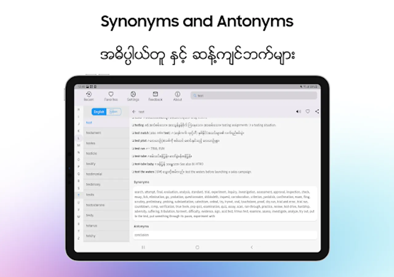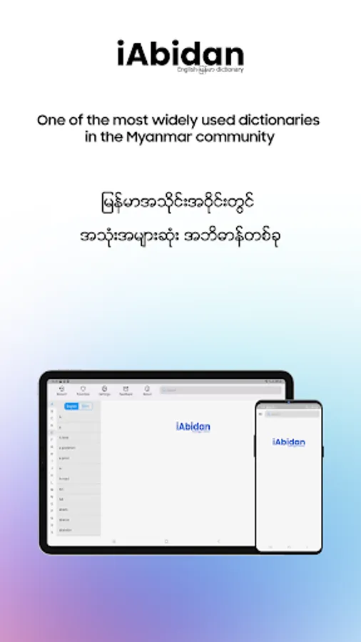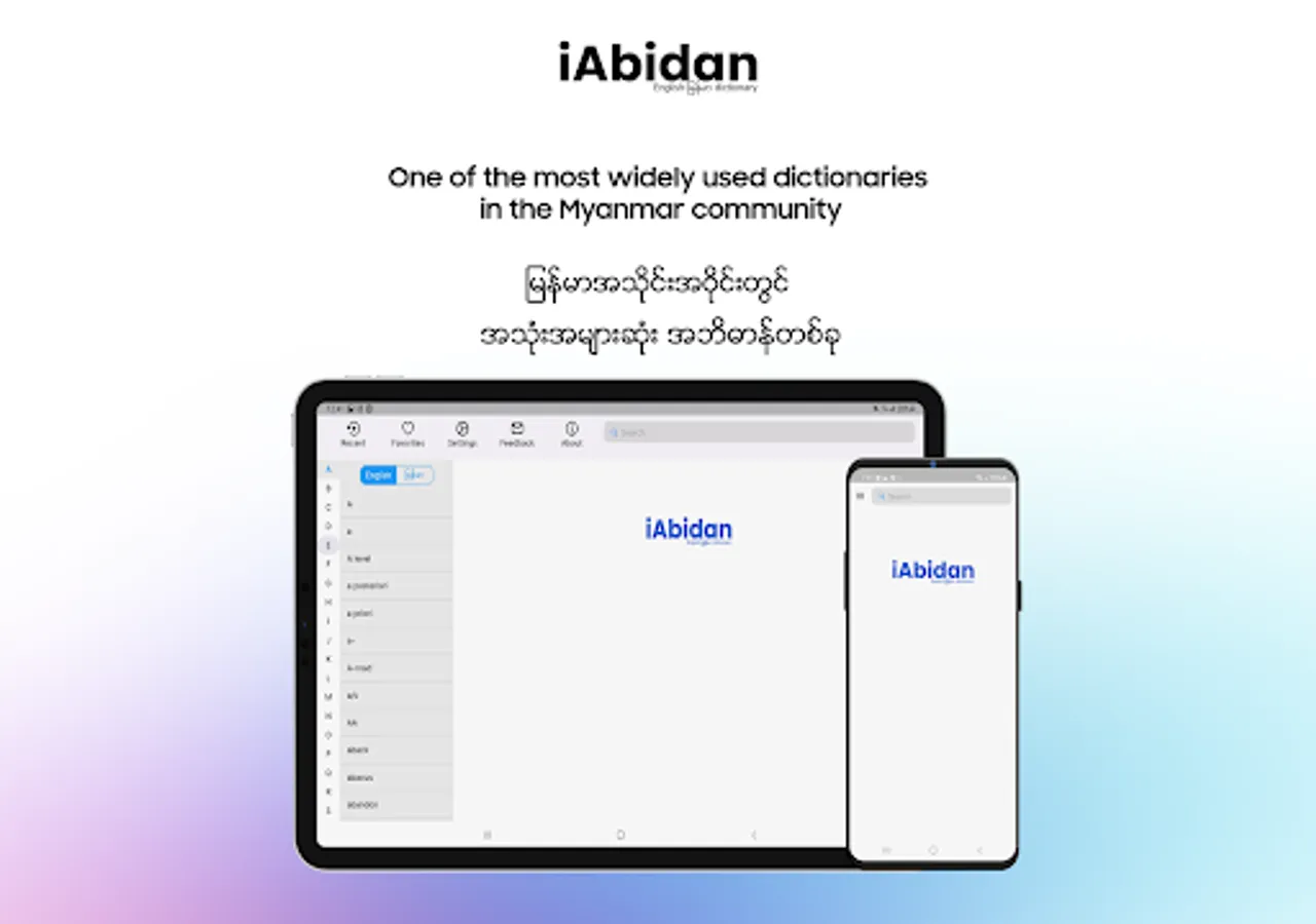 Since 2011, the iAbidan dictionary has been one of the most widely used dictionaries in the Myanmar community. The iAbidan dictionary provides not only the definition of each word but also its pronunciation, synonyms, antonyms, usage examples, phonetics, and voice capabilities for your devices. This comprehensive dictionary is a great resource for anyone looking for an all-in-one language tool. Moreover, the iAbidan dictionary is available both online and offline, allowing you to access it anytime and anywhere, even without an internet connection.