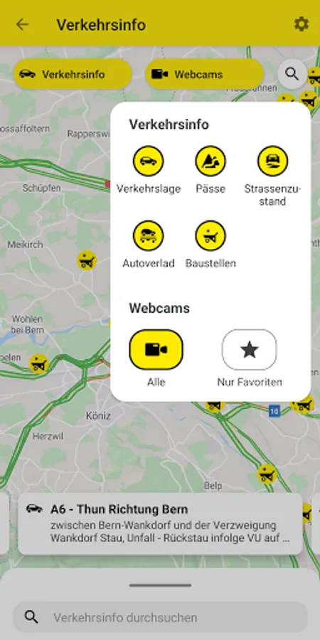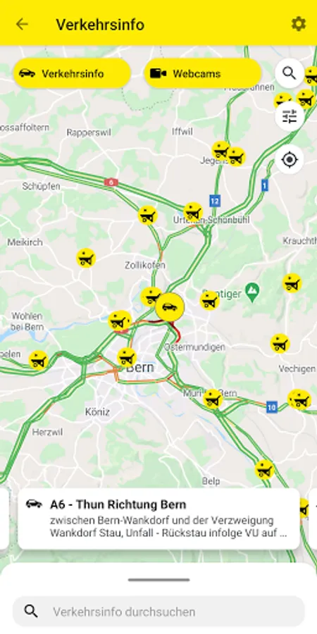Traffic jams, diversions, construction sites, mountain passes in real time. Including audio bulletin and over 80 webcams throughout Switzerland.