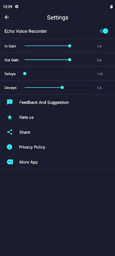 In Eco voice changer there is an option given to you for on/off the echo effect. If you keep echo effect on then you can adjust the pitch/gain or speed of the voice effect via voice recorder. Using Voice Changer application you can add sound effect for your voice or Music. After saving your audio file you can share it to everyone.