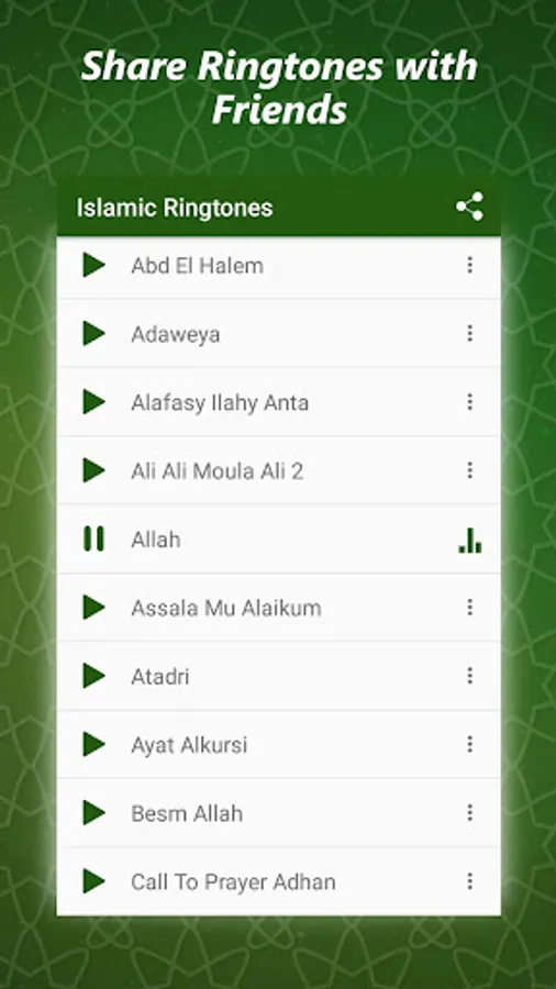 Stay in touch with your religion, set some of the best religious songs as ringtones and feel the presence of Allah every time your phone is ringing.