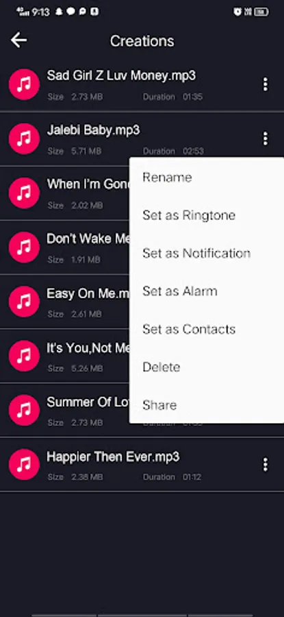 - set as default ringtone, as alarm & as notification tone.