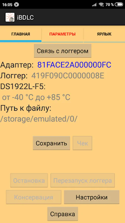 By connecting the hardware components of the complex to the Android gadget and installing the iBDL_C program that controls their work, the user can effectively support iBDL recorders in the field, when using a computer is inconvenient, expensive or impossible. The complex allows reading logged results from their memory, as well as archiving them in the memory of the gadget and / or sending them to an FTP server, with the aim of exporting this data to a personal computer. It is also possible to generate check files that graphically display the results of the monitoring performed by the logger in a symbolic form. In addition, the complex allows setting the iBDL recorders settings, which determine the features of their work in the next monitoring session, start and stop the monitoring session, as well as preserve loggers that are taken out of service.