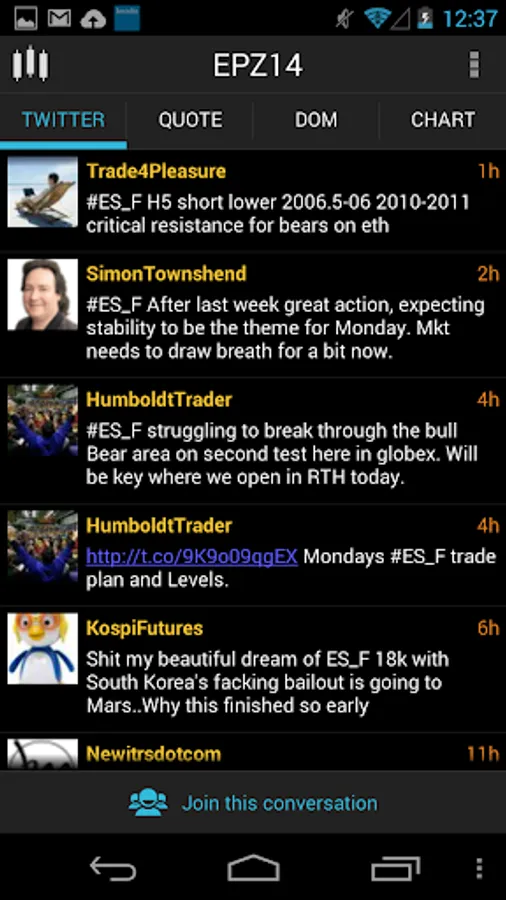 TWITTER integration on each contract, view feed and join the conversation