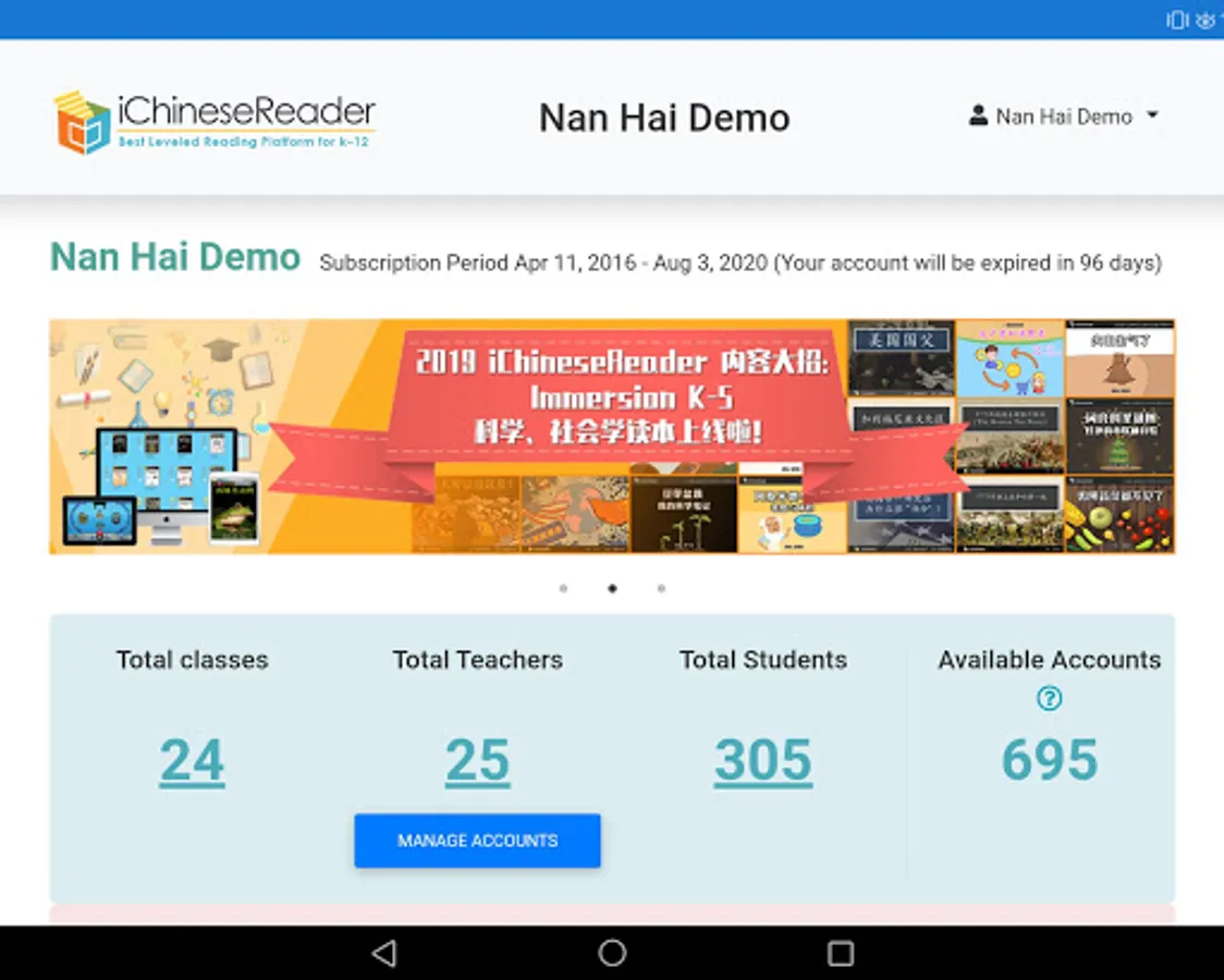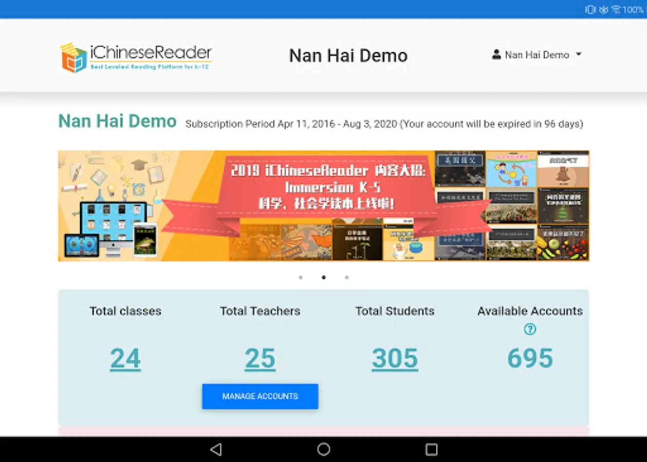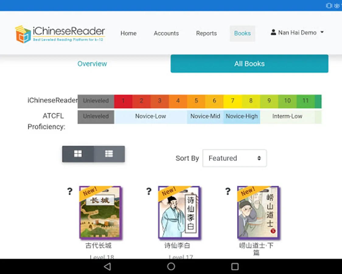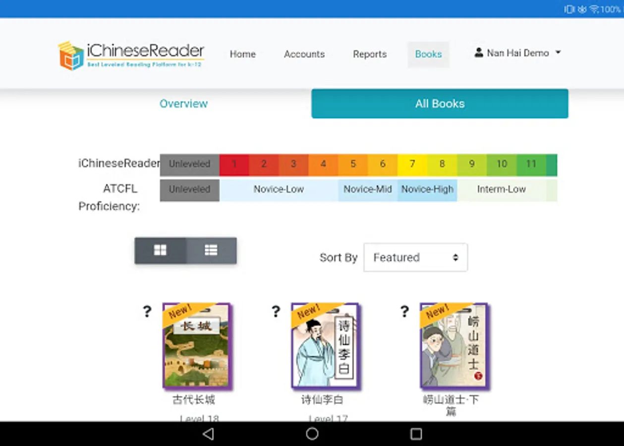 iChineseReader offers more than 3,000 interactive e-books, placed at 20 different reading levels and covering all grade levels. The content covers required curriculum and