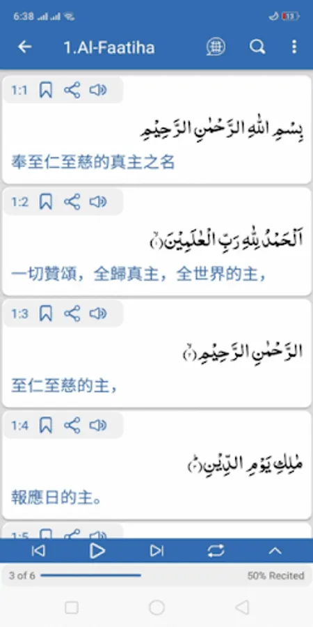 • You can also add Bookmarks to Aayahs that you want to remember or read at a later time