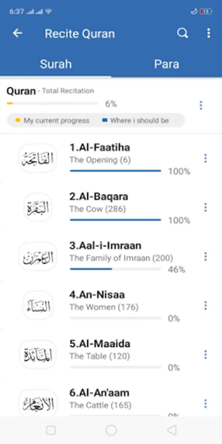 • You can easily access any of the 30 Paras, 114 Surahs and respective verses (Ayah)