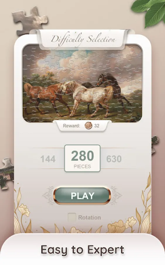 Our game is designed for both beginners and advanced players. You can freely choose from 5 difficulty levels, and play up to hundreds of pieces. The jigsaws puzzle game difficulty is based on the number of picture puzzle pieces, which should be put together. Enjoy piecing new bright magic jigsaw puzzles together every day!