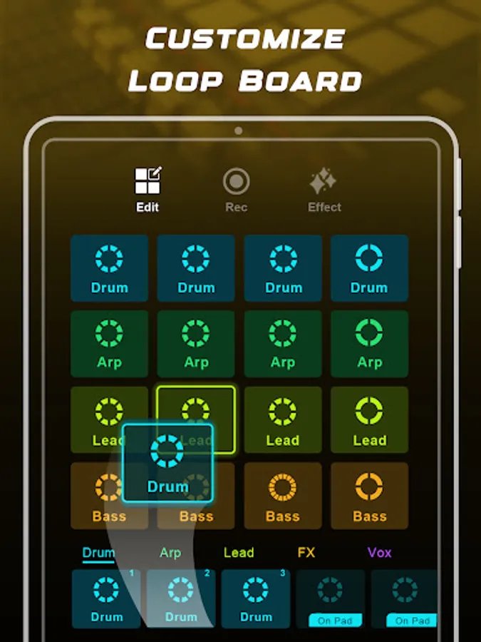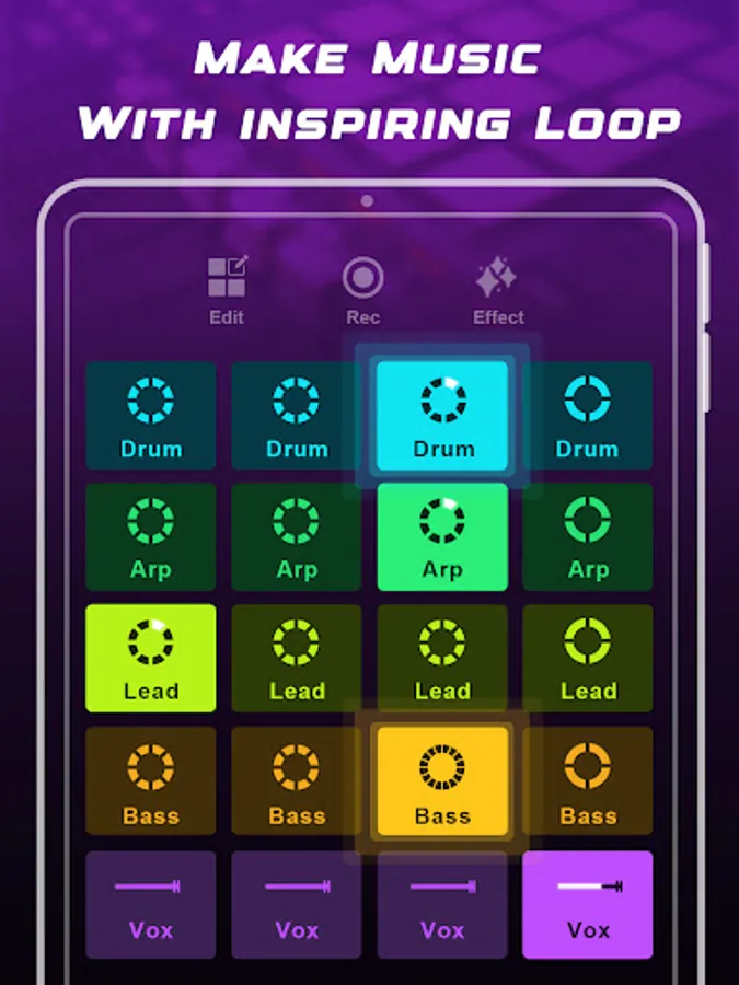 LoopPad is a Music mixer, drum pads machine for creating music.Make music and beats with enchanting Loop! Play rhythm and melody and mix them and be the producer.The easy interface was made for you to create a loopy mix. You can launch pads with different loops and one-shots FX.