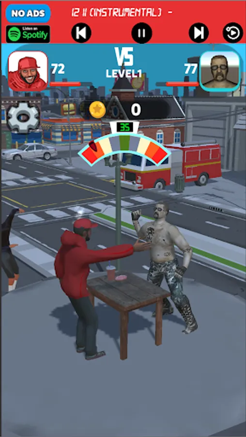 Time the meter to land in the Green to inflict maximum damage to your opponent. Gain points for each victory to use increase Health and Power as you advance through rounds while the crowd cheers and you're distracted by a Hip Hop Soundtrack to with hits.