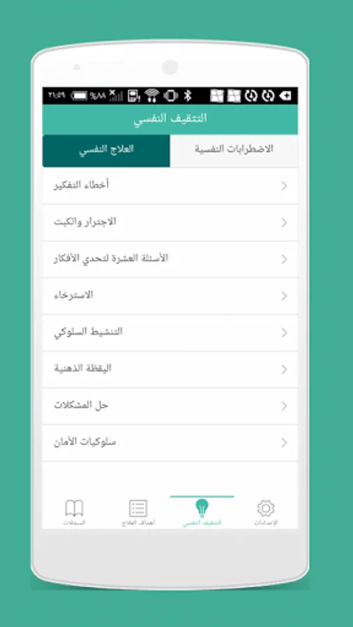 Application information about mental disorders and additionally contains some information about the technicians used, and many of the tools that help the client to record and assess the various positions and take advantage of these tools and methods during the therapeutic process and continue to use it until after the end of the treatment period so as to achieve the first goal of cognitive behavioral therapy, which customer training until it is the same processor.