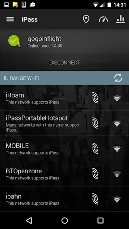 * Save time. With iPass, there is no need to look for a free hotspot or submit expenses for Wi-Fi access.