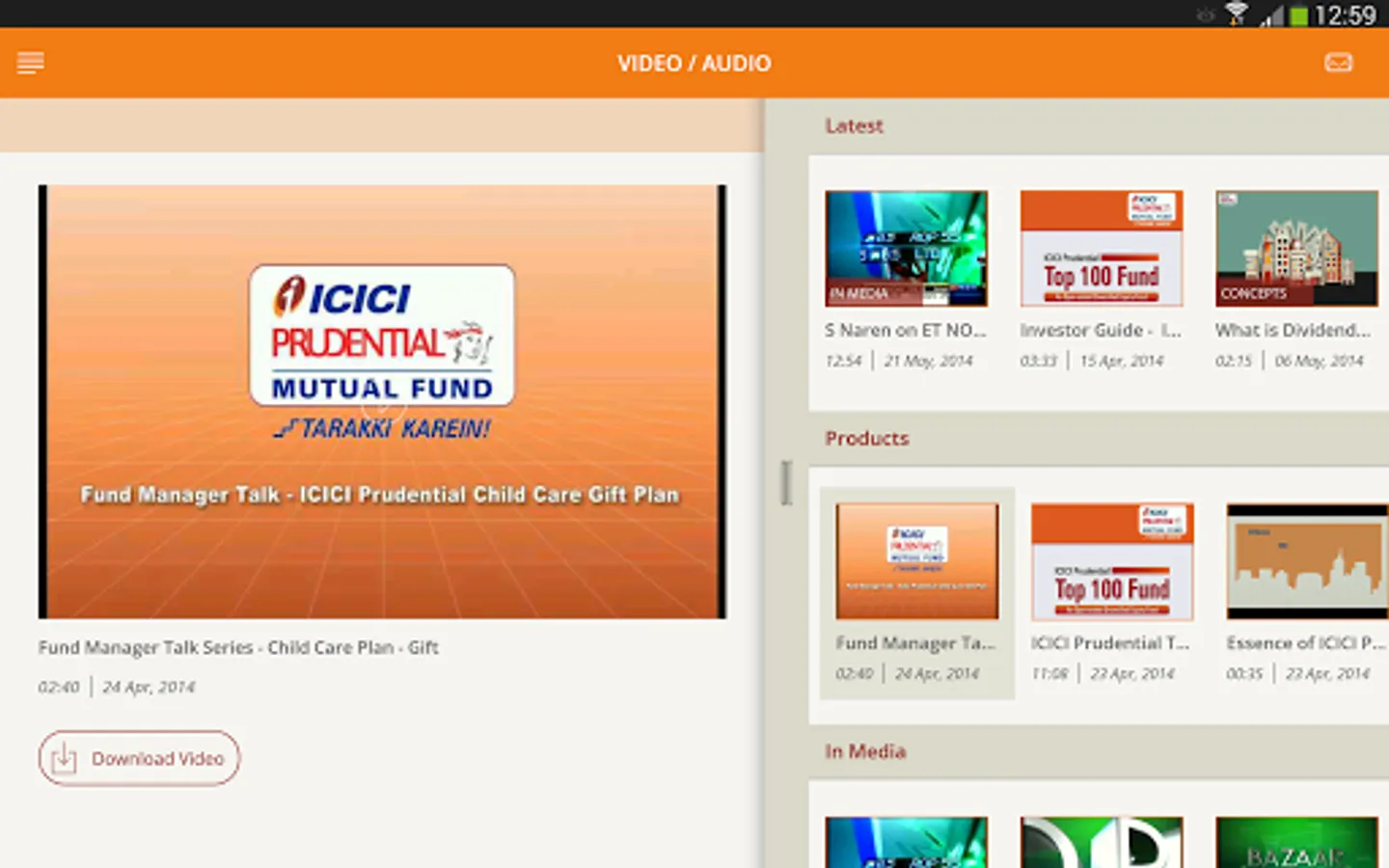 This App will provide relevant information of Mutual Fund through Video, Audio, News, Messages etc.