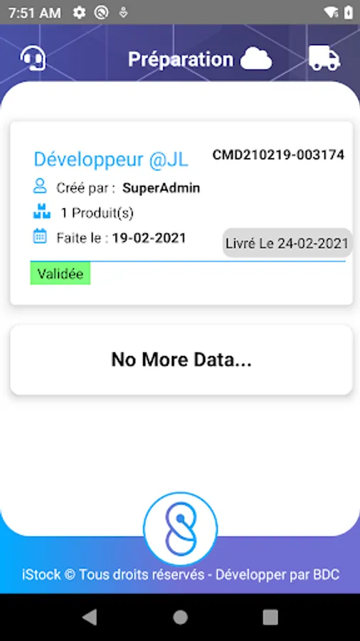 iStock is a warehouse management application on a Zebra PDA developed by Big Data Consulting. The application allows your sales representatives in the warehouse to prepare orders before sending by a delivery person directly to the PDA. It has been specially designed for professionals. It is unique software.