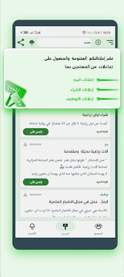 iThmar is not just a fleeting application, but rather a partner that contributes to facilitating the experience of individuals interested in planting fruit trees and taking effective care of them. It enables users to offer their products and services for sale and purchase, and even employment opportunities in the field of agriculture. This social platform is unique, as it brings together workers in this field, enthusiasts, and specialists under one roof, facilitating communication and dealing between them easily and smoothly.