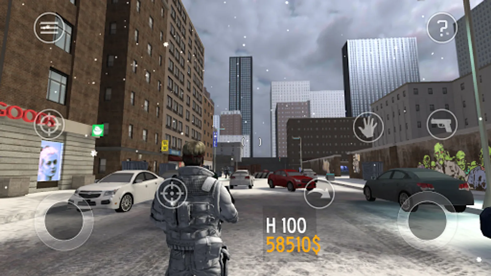 multiplayer offline / internet wifi pvp third person shooter game: Battle robot and cyborg divisions in the snow filled city