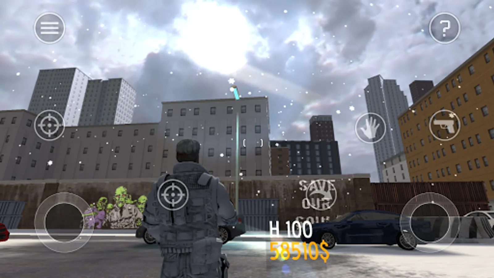 Pickup weapons hidden around the city. You will need enough credits to pay for them.