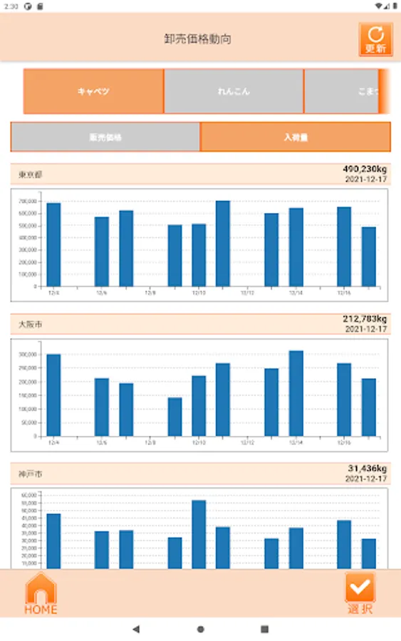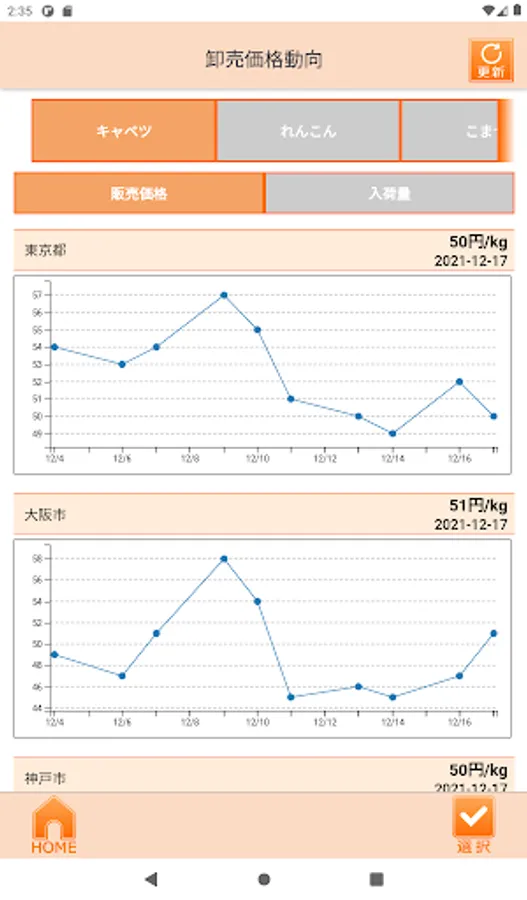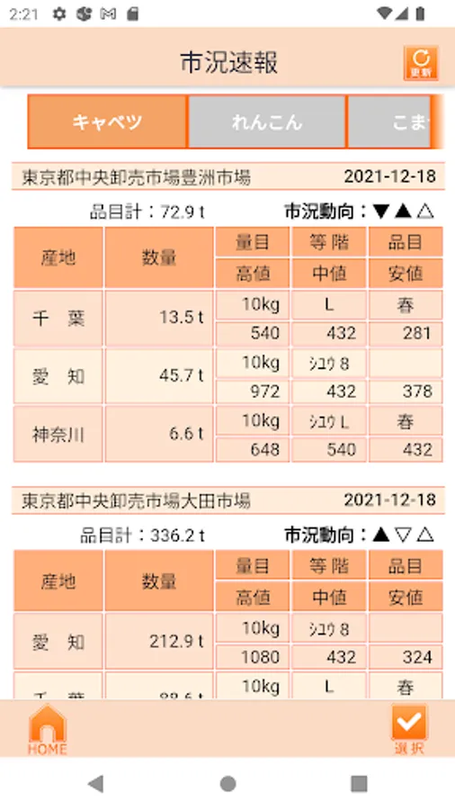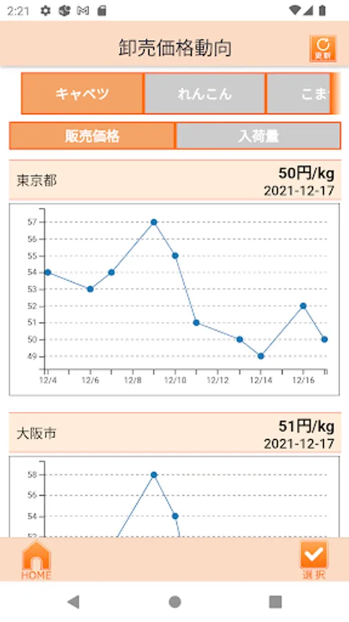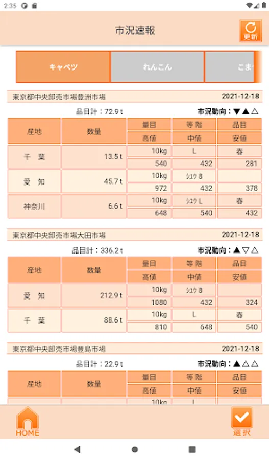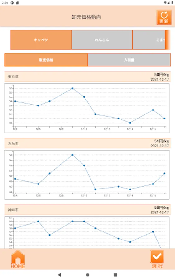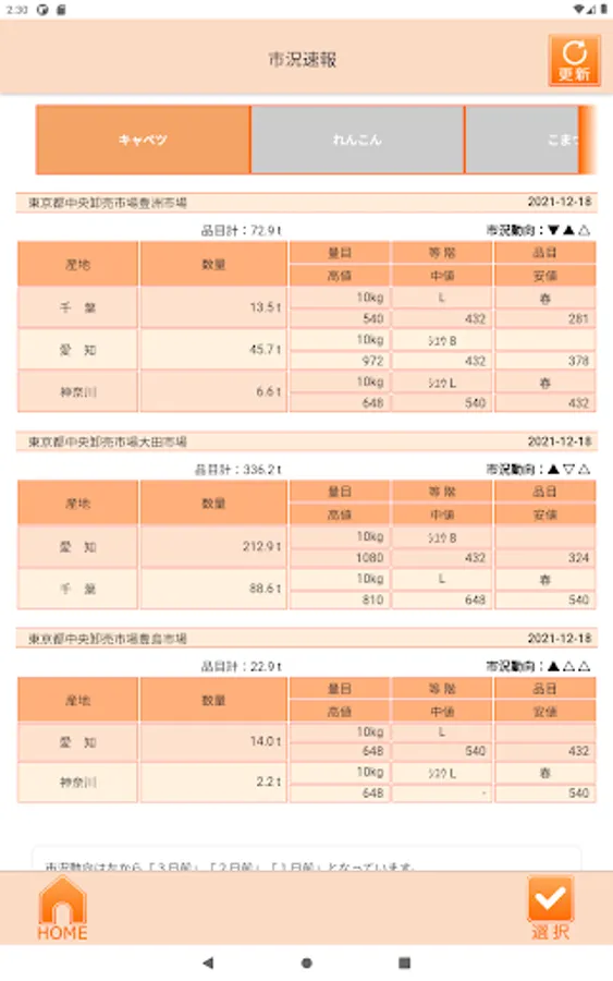 Fruit and vegetable market information "YAOYASAN" supports checking the market conditions and price movements of fruits and vegetables.